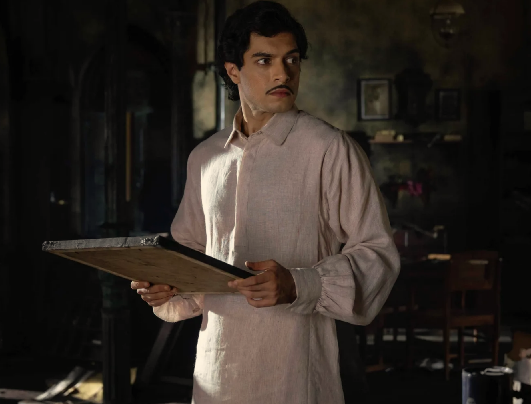 Even Maharaj himself — the antagonist, whose presence should embody the film’s moral weight — begins with commanding dimension but gradually flattens into rhetoric. In the early scenes, his confidence, gesture, and quiet menace hint at layered belief and self-justification. But as the story progresses, the writing withdraws his agency. He stops acting from character and starts reacting for plot.